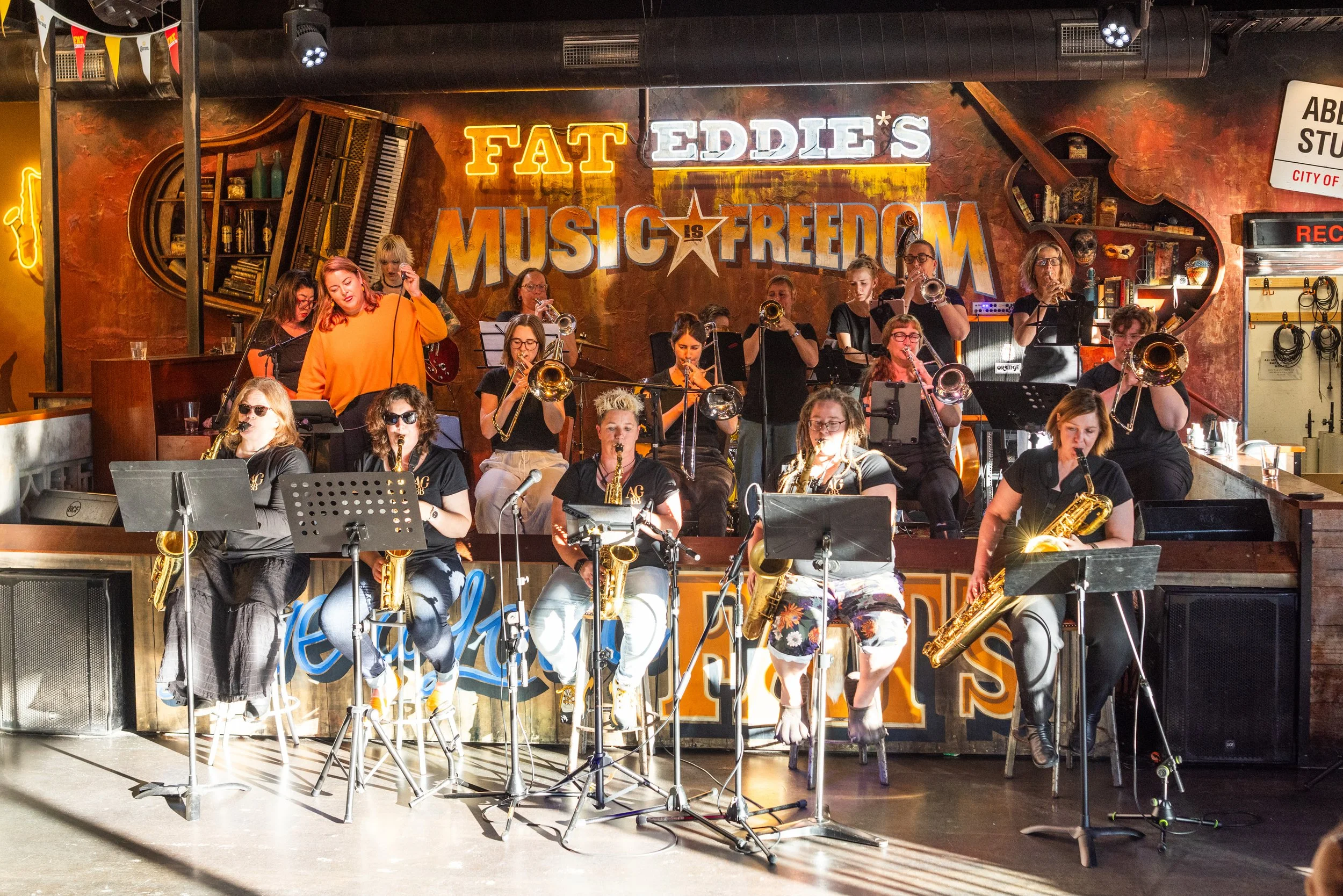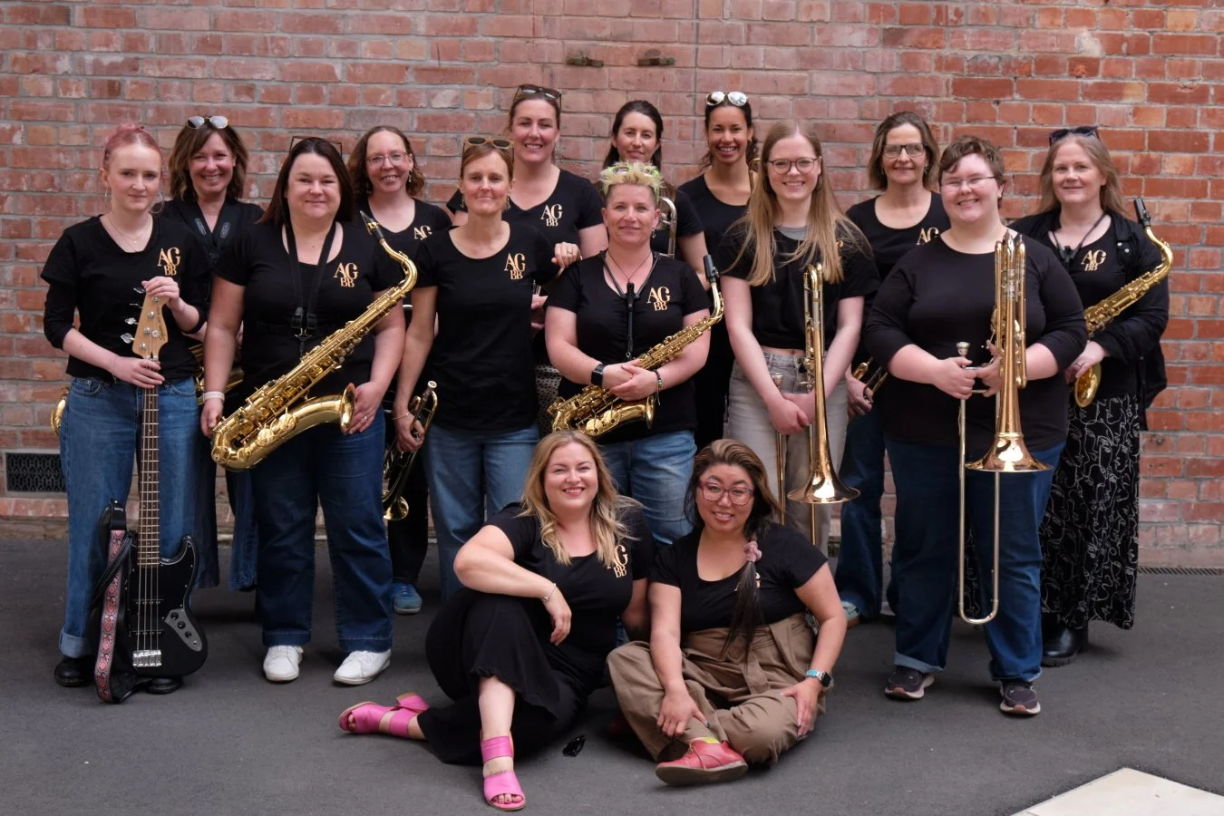The All Girl Big Band is available for festivals, indoor and outdoor gigs, and private functions.